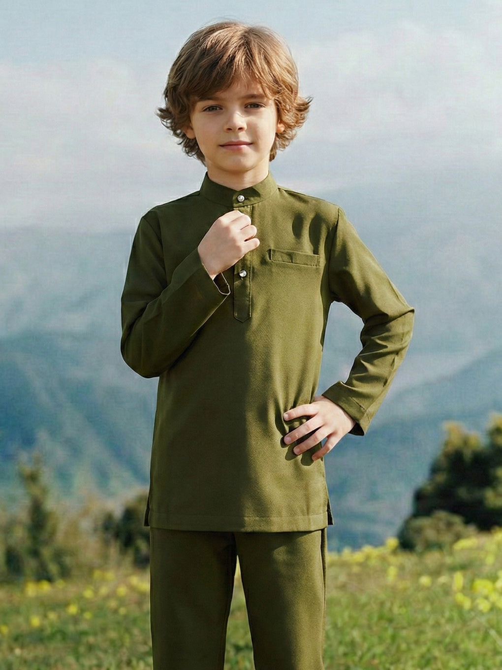 KIDS BAJU MELAYU BAYU (OLIVE GREEN)