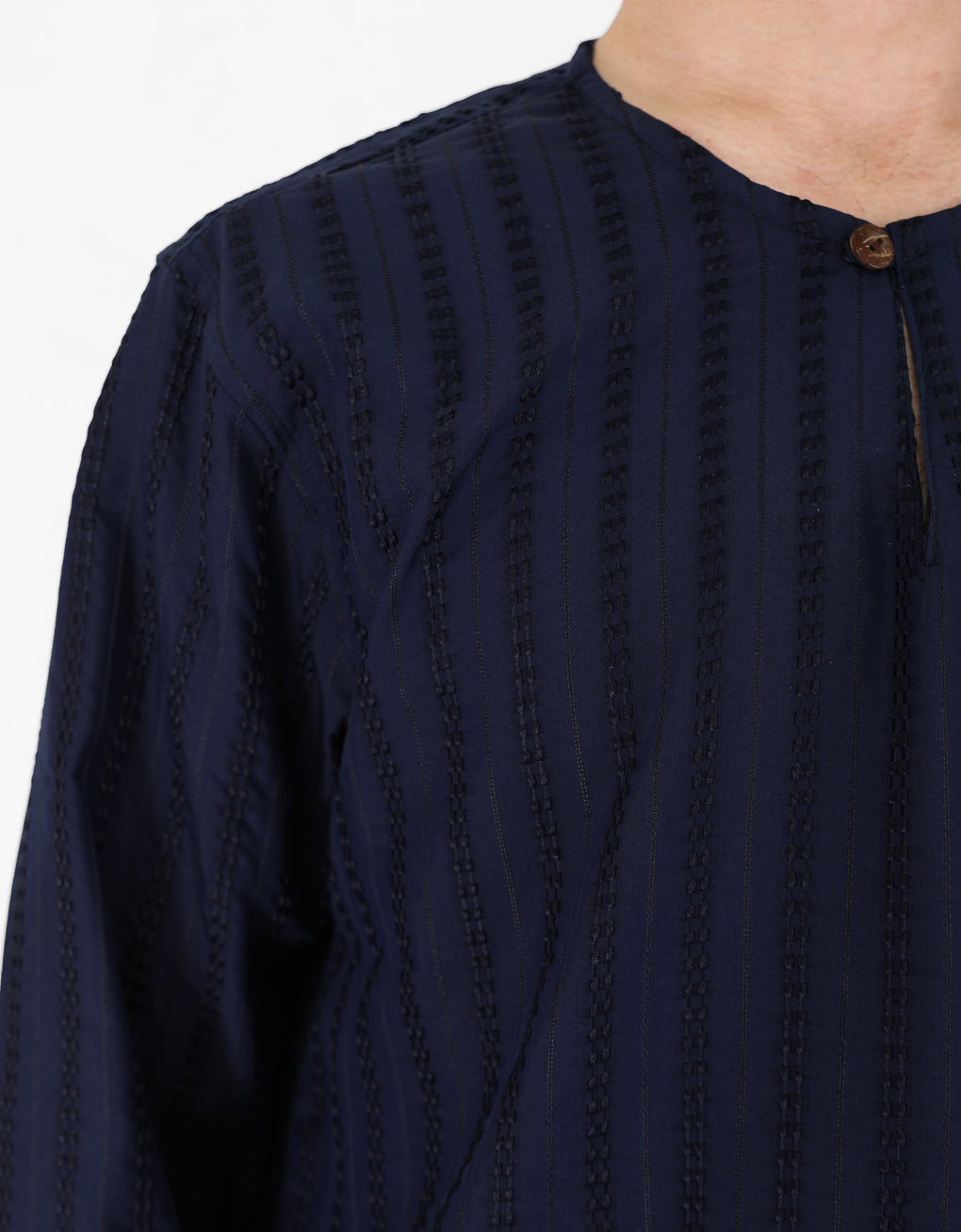 Elevate your style with premium shirred fabrics regular fit round neck kurta. The matched coloured buttons and long sleeves add a touch of sophistication, while the side pockets provides functionality and fashion. Perfect for any occasion, this kurta effortlessly combines comfort and elegance.